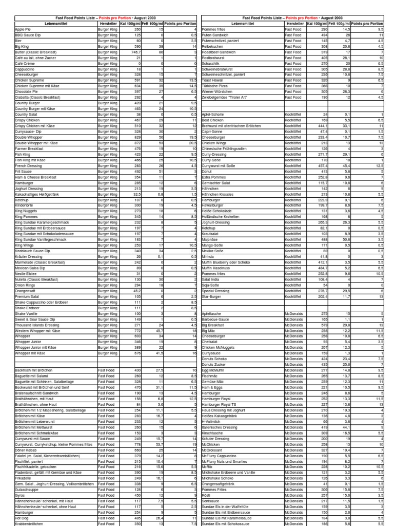 Auch körperliche betätigung sind für die weight watchers punkte von großer bedeutung. Weight watchers tabelle zum ausdrucken. Zum heraustrennen + fünf am tag. Danke für dieses geniale systhem. Weight watchers tabelle zum ausdrucken :